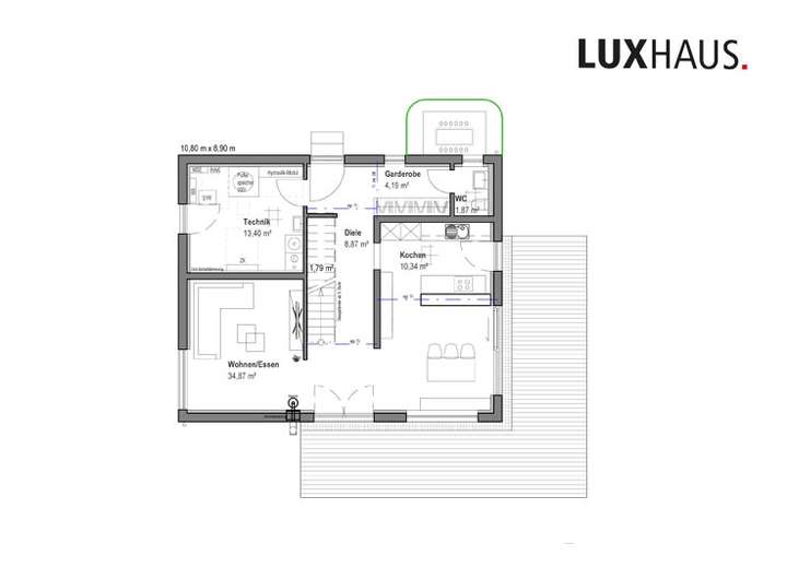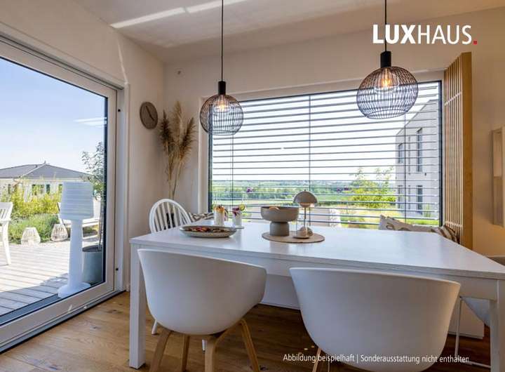 Dieses gemütliche Satteldachhaus ist ausgestattet mit Objekten deutscher Markenhersteller. Um Ihre individuelle Note zu betonen, laden wir Sie in unsere LUXHAUS Boutique ein - dort erwarten Sie unsere LUXHAUS Innenarchitekten, um mit Ihnen gemeinsam die Ausstattung festzulegen.