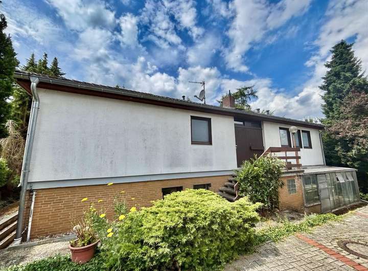Willkommen in Ihrem neuen Zuhause! Dieser gepflegte Bungalow am Ende eines Stickweges mit einer Wohnfläche von ca. 144 m² wurde von der renommierten Firma Quelle Fertighaus GmbH errichtet und überzeugt durch seine durchdachte Raumaufteilung, hochwertige Bauweise und attraktive Lage. Das großzügige Grundstück mit 976 m² bietet reichlich Platz für Gartenfreunde, Kinder oder entspannte Stunden im Grünen.