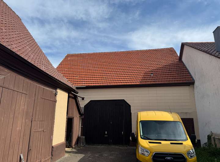 Die große Scheune auf dem Grundstück kann voraussichtlich abgerissen und durch ein Einfamilienhaus ersetzt werden, oder es besteht die Möglichkeit des Ausbaus. Hier gäbe es natürlich noch Details zu klären. (Keine verbindliche Zusage. Dies muss mit dem Bauamt geklärt werden) Grundsätzlich lässt sich sagen, das Grundstück unterliegt in der Bebaubarkeit der §34 also Nachbarschaftsbebauung.