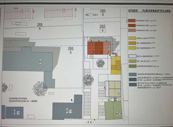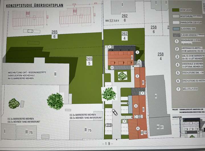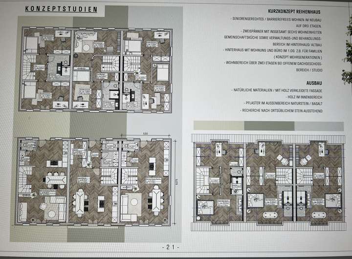 Erste Konzeptstudien einer Reihenhausanlage sowie eines Mehrfamilienhauses können vorgelegt werden.