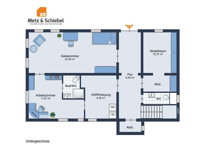 - Tiefparterre mit separatem Eingang (zum Büro)