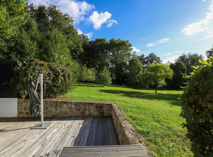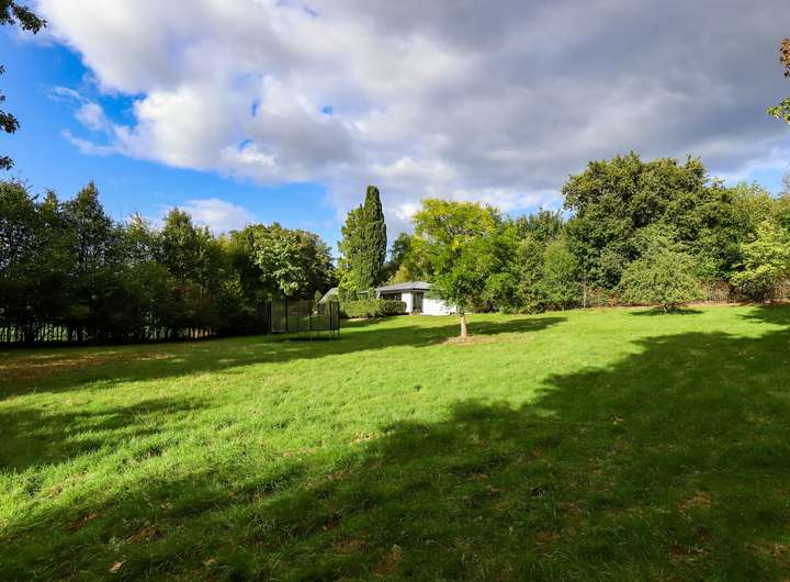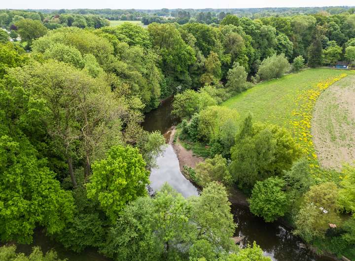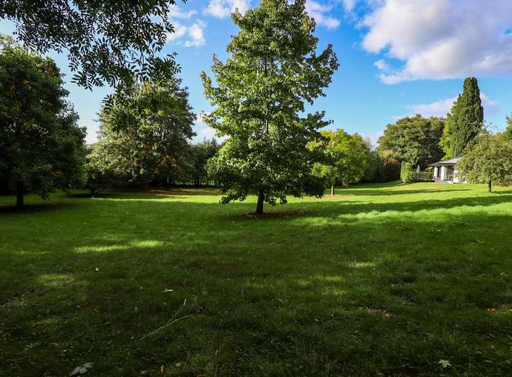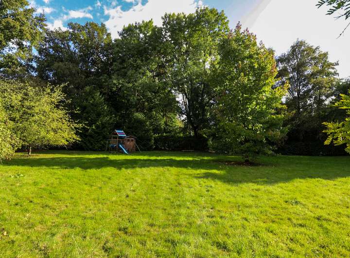 Das Grundstück bietet durch seine Südwest-Ausrichtung ganztägig Sonne und ist gärtnerisch gepflegt, ohne überladen zu wirken. Ein weitläufiger, parkartiger Garten mit Obstbäumen, Rasenflächen und altem Baumbestand bildet das grüne Herzstück dieses außergewöhnlichen Anwesens. Highlight ist der direkte Zugang zur Werse am hinteren Grundstücksende – ein kleiner Holzsteg und ein charmantes Bootshaus laden hier zu lauschigen Sommerabenden oder einer spontanen Kanutour ein.