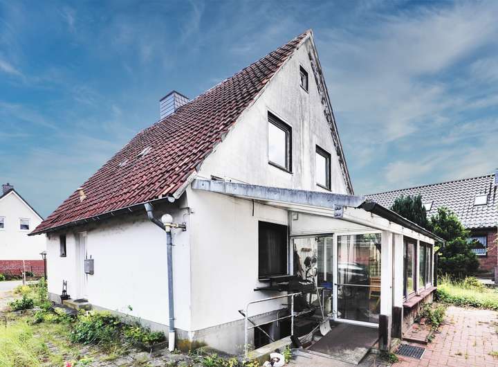 In Oldau steht dieses Einfamilienhaus mit ca. 90 m² Wohnfläche auf einem 975 m² großen Grundstück. Das Haus wurde über die Jahre einfach genutzt und befindet sich insgesamt in einem renovierungsbedürftigen Zustand. Je nach Vorhaben ist sowohl eine sorgfältige Sanierung als auch ein kompletter Neuanfang möglich. Verschiedene Wege bieten sich an. Die vorhandene Heizungsanlage wurde bereits erneuert (2018). In anderen Bereichen wie Elektrik (zum Teil), Fenstern und Sanitär besteht jedoch deutlicher Modernisierungsbedarf. Das Haus ist unterkellert und eignet sich insbesondere für handwerklich Erfahrene oder Käufer mit langfristiger Planungsperspektive. Ein Wintergarten ist ebenfalls vorhanden und erweitert den Wohnbereich um eine helle und geschützte Fläche mit Blick in den Garten. Zum Objekt gehört außerdem ein separates Nebengebäude mit Garage und zusätzlichem Werkraum. Dieses bietet praktische Nutzungsmöglichkeiten, etwa für Lager, Hobby oder handwerkliche Tätigkeiten. Das 975 m² große Grundstück eröffnet viel Raum für neue Ideen. Ob Erweiterung, Anbau oder eine neue Bebauung, je nach Wunsch und den örtlichen Vorgaben sind unterschiedliche Entwicklungen realisierbar.Insgesamt handelt es sich um ein großes Grundstück in ruhiger Lage mit einfacher Bestandsbebauung. Die funktionierende Heiztechnik, der Wintergarten und das vorhandene Nebengebäude bilden eine solide Grundlage sowohl für eine Sanierung als auch für einen Neubeginn. Gerne sende ich Ihnen weitere Informationen oder vereinbare einen Besichtigungstermin.