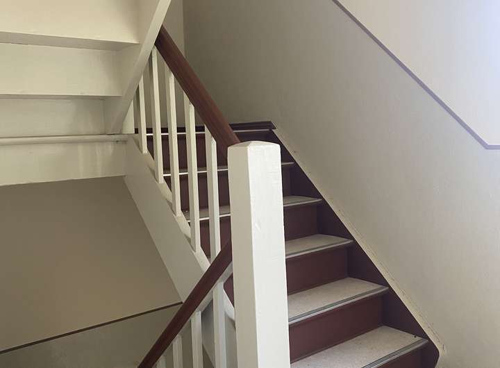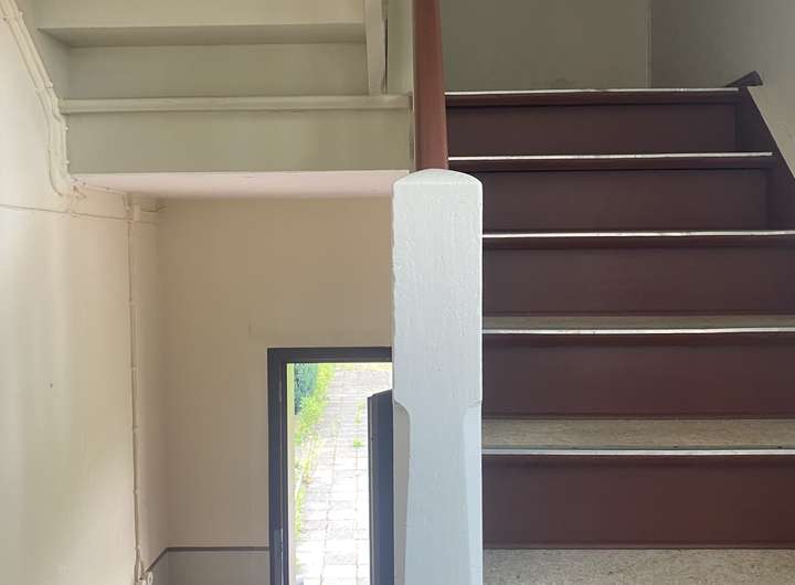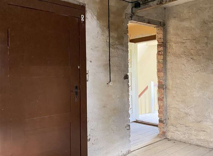 Zuvor wurde das Objekt als Zwei-Parteien-Haus genutzt. Durch ein Treppenhaus sind beide ehemaligen Wohnungen miteinander verbunden.