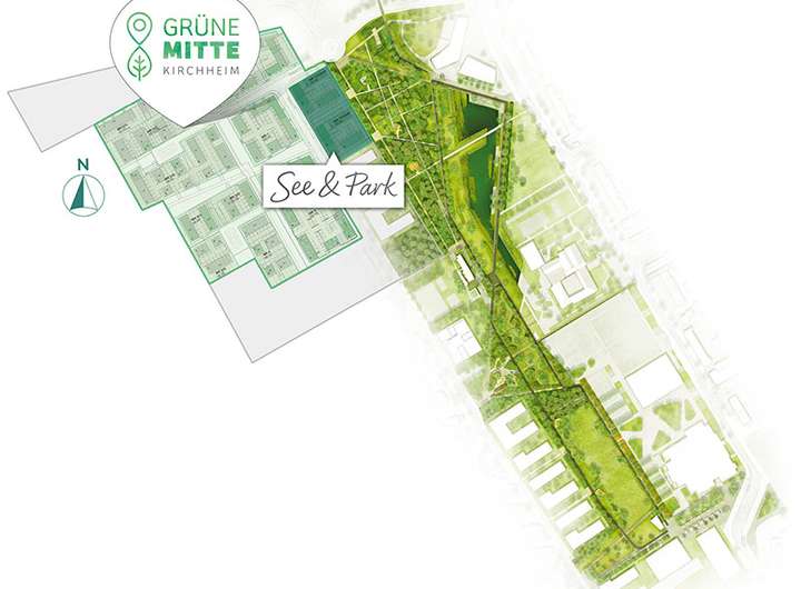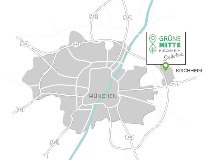 Östlich von München entsteht mit der GRÜNEN MITTE KIRCHHEIM ein neues Wohnquartier in attraktiver Lage zwischen Kirchheim und Heimstetten.