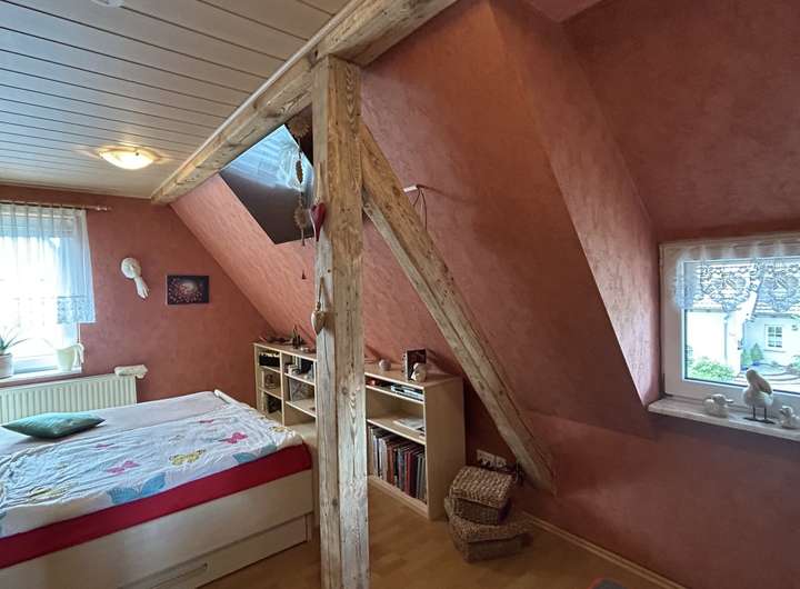 Im Dachgeschoss sind der Flur, das Schlafzimmer und zwei weitere Zimmer für eine individuelle Nutzung ausgebaut.
