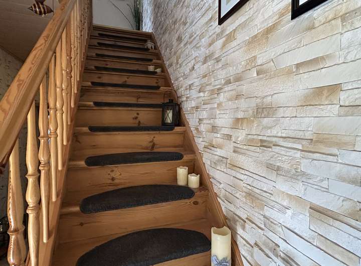 - Geschosstreppe: Holztreppe, aufgearbeitet