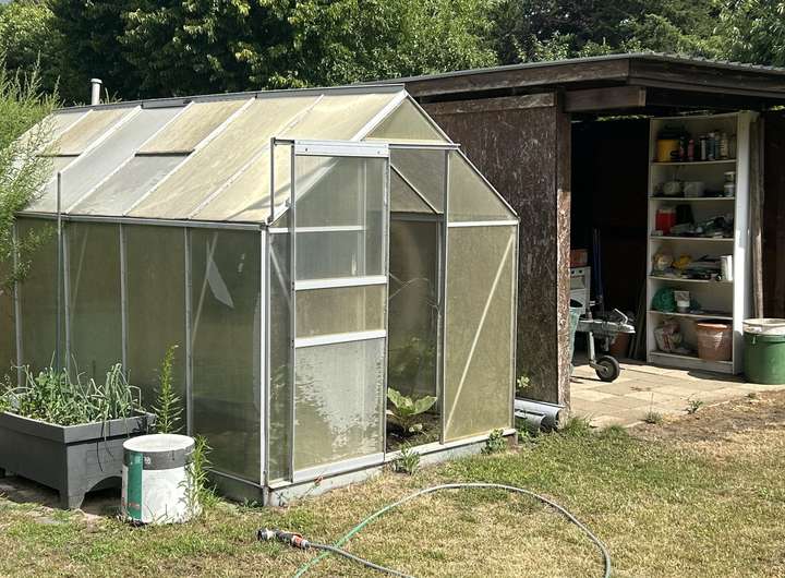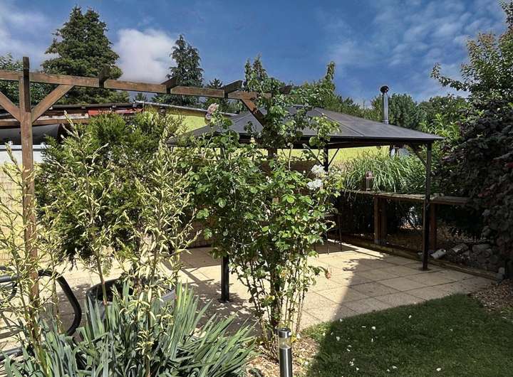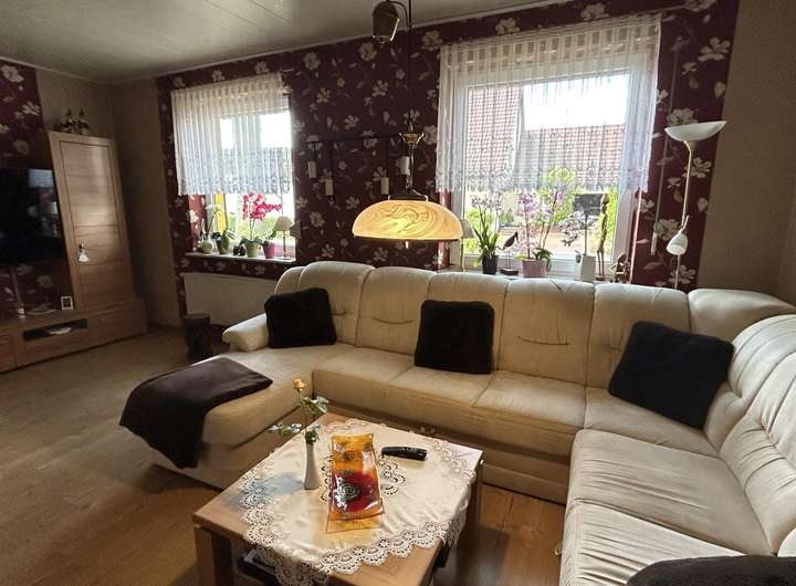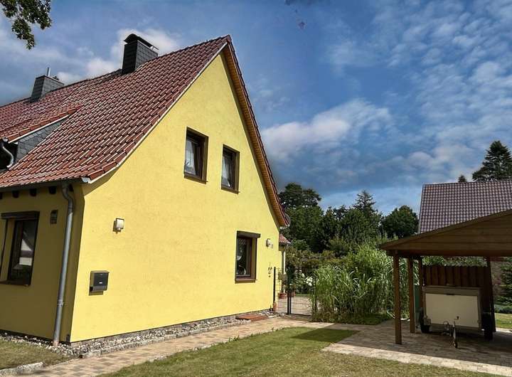 Zum Verkauf steht ein sehr gepflegtes Wohlfühlanwesen, bebaut mit einer Doppelhaushälfte mit Anbau, einem Doppelcarport, Nebengebäude, einem weiteren Carport und Gewächshaus. Das solide Wohnhaus wurde 2009 sehr umfangreich und solide modernisiert (außer Heiztherme).