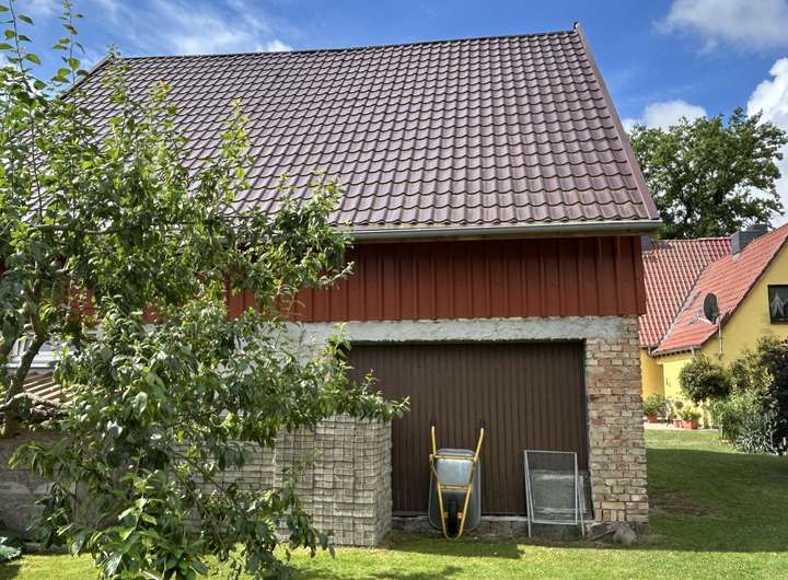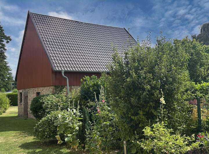 Das Nebengebäude mit ca. 100 m² Nutzfläche bietet Flächen für Hobby und Handwerk. Es wurde 2016 mit Elektrik (inkl. Starkstrom) ausgestattet und es gibt auch Wasser- und Abwasseranschluss, so dass bei Bedarf sogar eine Sauna eingebaut werden kann. Die Dacheindeckung des Nebengebäudes wurde 2020 erneuert (Trapezblech).