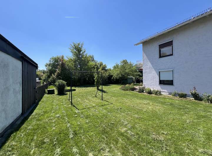 Weitblick hat man auch auf dem Grundstück , welches komplett ca. 1.100 m² umfasst und aktuell mit einem renovierungsbedürftigen Einfamilienhaus bebaut ist, welches nach Bedarf modernisiert und weitergenutzt werden kann – eine interessante Option für Liebhaber von Bestandsimmobilien mit Charakter.