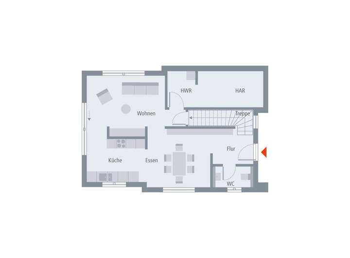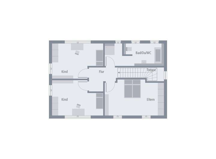 Geradlinige und schnörkellose Architektur prägt die zweigeschossige Bauhausvilla mit leichtem Fassadenrücksprung. Stilgetreu: das Flachdach und die klare Formgebung. Der große Wohn- und Kochbereich im Erdgeschoss überzeugt mit viel Freiraum und Helligkeit. Das zwischen Küche und Wohnzimmer durchdacht integrierte Wandelement sorgt für eine optische Abtrennung und ermöglicht eine moderne Raumplanung. Im Hauswirtschaftsraum findet nicht nur modernste Haustechnik ihren Platz. In der oberen Etage bieten zwei identische Kinderzimmer eine faire Raumaufteilung. Das Badezimmer mit abgetrennter Duschecke und das große Elternzimmer runden das Raumangebot ab.