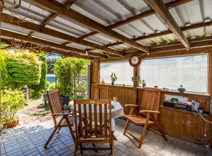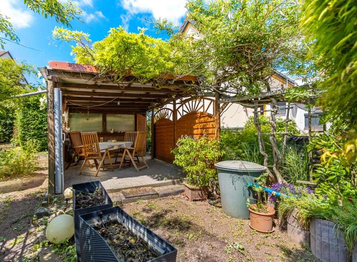 Der Garten hat eine überschaubare, gärtnerisch gut beherrschbare Größe und eignet sich durch die hinter dem Haus befindlichen grünen Flächen zum relaxen.