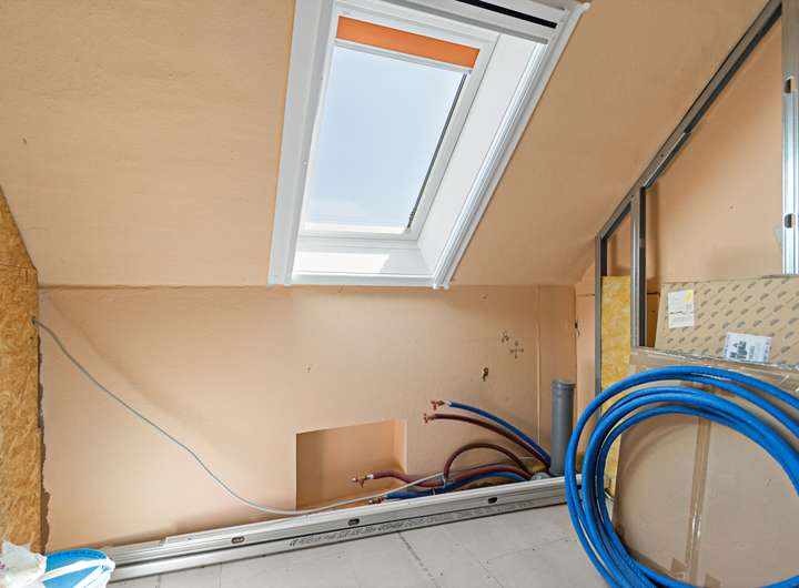 Zusätzlich war für das Dachgeschoss ein weiteres Bad geplant und befindet sich aktuell im Ausbaustatus.