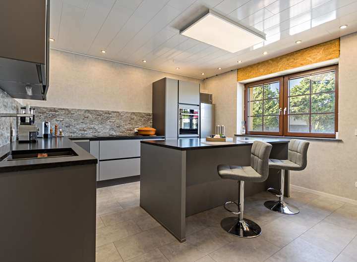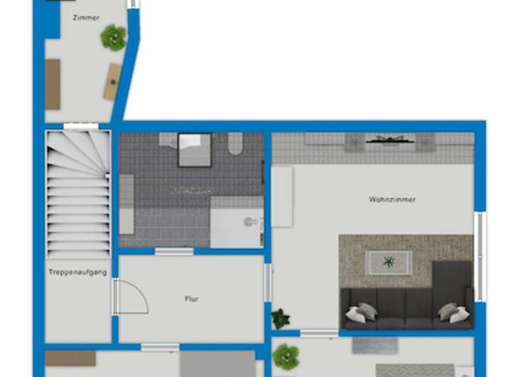 Im Erdgeschoss befinden sich der große Eingangsbreich, die Traumküche mit absoluter Traumeinbauküche! Zwei Zimmer und das große Bad befinden sich ebenfalls im Erdgeschoss. Ein geplantes und vorbereitetes Gäste-WC kann mit wenigen Handgriffen fertiggestellt werden.