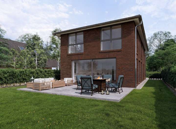 Modernes Bauprojekt für zwei Einfamilienhäuser in sonniger Lage in Hamburg-Poppenbüttel. Gebaut wird im KfW40-Standard mit ca. 126 m² Wohnfläche.