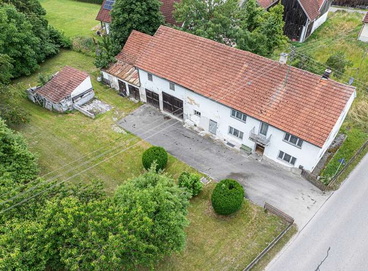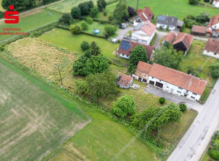 Das ca. 3.554 m² große Grundstück befindet sich in absolut ruhiger, dennoch gut angebundener Wohnlage. Das Grundstück unterteilt sich in ca. 1.300 m² bebaubare Fläche und ca. 2.254 m² Freifläche, Landwirtschaftsfläche und Wasserfläche. Die umliegende Bebauung ist geprägt von Einfamilienhäusern und Doppelhäusern. Das nach Osten ausgerichtete Grundstück weist eine Breite von ca. 27,5 Metern sowie eine Tiefe von ca. 57 Metern auf und hat einen rechteckigen Zuschnitt. Der Baugrund ist hervorragend für eine individuelle Wohnbebauung geeignet, einen qualifizierten Bebauungsplan gibt es nicht. Laut unverbindlicher Aussage des Landratsamtes Freising ist das Anwesen nach § 34 BauGB bebaubar und richtet sich damit nach der umliegenden Nachbarschaftsbebauung. Wie in unmittelbarer Nachbarschaft bereits geschehen, wäre eine Neubebauung mit einem großen Doppelhaus denkbar. Auf dem Grundstück befindet sich ein Altbestand ohne funktionierende Heizung, der vom Käufer abgerissen werden muss. Die Lage gilt als besonders wertvoll und familiär.