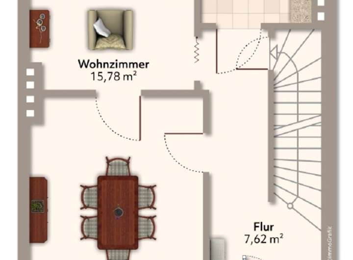 - eine Wendeltreppe führt vom Obergeschoss in den rückwärtigen Garten -