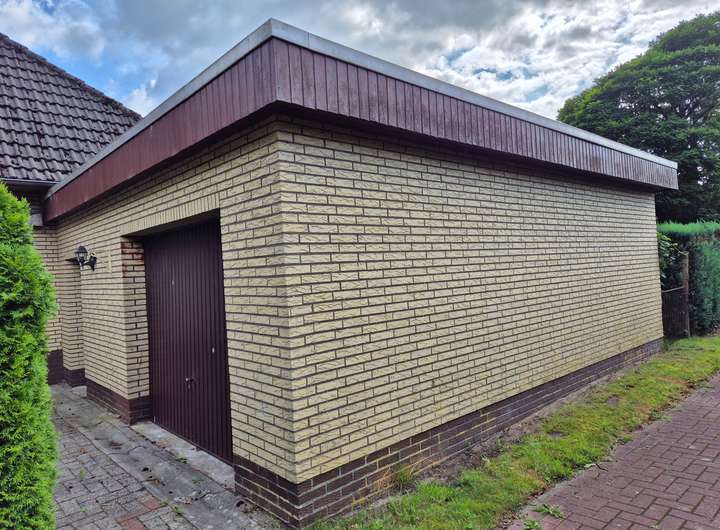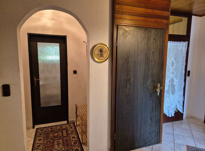 Zur Immobilie gehört eine Garage mit Seiteneingang, die Ihren Fahrzeugen Schutz bietet. Über den Flurbereich an der Garage gelangen Sie zum Hauswirtschaftsraum, in dem auch die Heizung untergebracht ist.