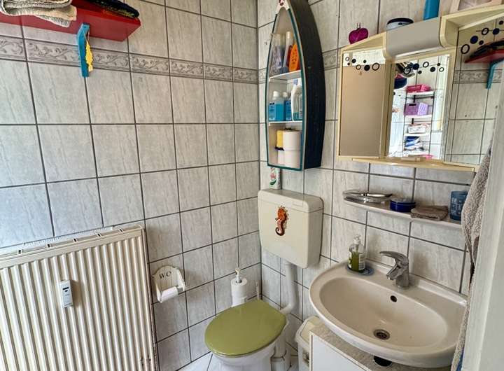 Im Erdgeschoss gelangt man über den Flur, von dem aus sämtliche Räume zugänglich sind, in das helle Wohnzimmer, die Küche mit vorhandener Einbauküche, das Duschbad mit WC sowie den Hauswirtschaftsraum mit angrenzendem Heizungsraum.
