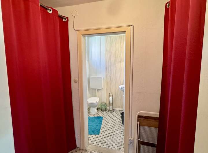 Im hinteren Teil des Gebäudes befindet sich eine ca. 50 qm große Wohneinheit, die seit rund 13 Jahren zuverlässig vermietet ist. Dies bietet dem Erwerber eine solide Grundlage für laufende Mieteinnahmen.