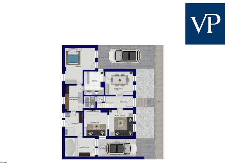 Zwei Außenstellplätze direkt am Haus, trockener Zugang durch Seiteneingang