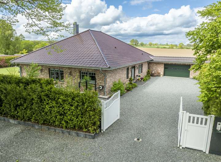In idyllischer Feldrandlage gelegen, erwartet Sie dieses außergewöhnliche Einfamilienhaus, 2023 gebaut, das modernen Wohnkomfort, technische Raffinesse und naturnahes Leben vereint.