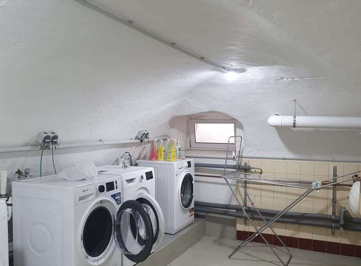 Im Keller befindet sich ein Waschmaschinenraum