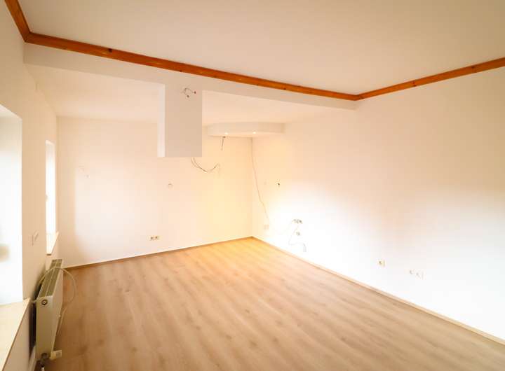 Im Erdgeschoss wurde die Küche bereits für eine Kochinsel mit freistehender Dunstabzugshaube vorbereitet. Strom- und Wasseranschlüsse für eine Küche existieren ebenfalls im Obergeschoss – ideal, um Wohnen und Kochen auf einer Ebene zu vereinen. Die Räume lassen sich flexibel als Büro, Praxis, Gästezimmer oder Spielzimmer nutzen.