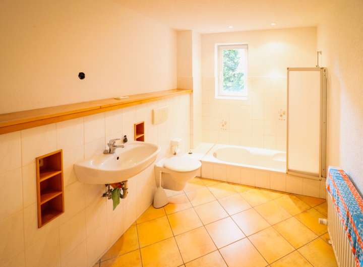Ein Tageslichtbad mit Wanne befindet sich im EG, ein Duschbereich direkt neben der Sauna im OG. Im Keller ist zudem ein zusätzlicher Raum vorbereitet, der sich ebenfalls zum Bad ausbauen ließe oder als Hauswirtschaftsbereich dient.