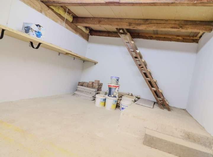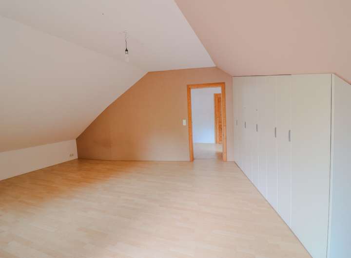 Im ausgebauten Keller stehen drei Räume zur Verfügung. Ein Bereich mit Öltanks, ein vorbereiteter Bad- oder Hobbyraum sowie ein großer, separater Raum mit eigenem Außenzugang – ideal als Partykeller, Jugendbereich, Spielparadies oder Heimkino. Darüber hinaus gibt es reichlich Stauraum auf dem begehbaren Dachboden mit normaler Tür und viel Platz.