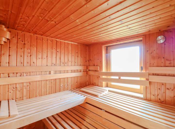 Das Highlight ist das ca. 45 m² große Wohnzimmer im ruhigen Anbau (2002), mit bodentiefen Fenstern und direktem Zugang zum Garten. Ein Kaminanschluss sorgt für gemütliche Stunden im Herbst und Winter. Für pure Entspannung sorgt die hauseigene Sauna mit angrenzender Dusche – ein privates Wellness-Erlebnis zu Hause.