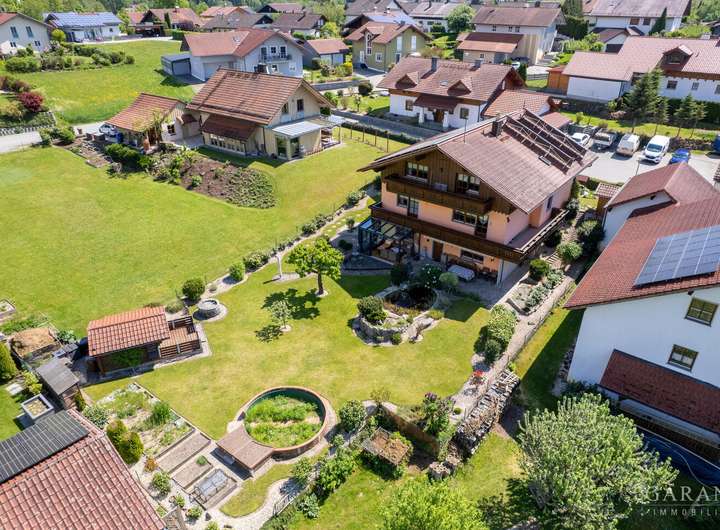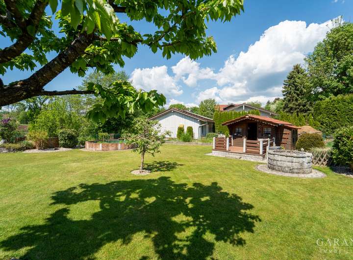 Das ca. 960 m² große Grundstück ist ein echtes Highlight für Gartenliebhaber: Der Garten wurde 2023/2024 neu angelegt, mit Zier- und Nutzflächen, Teich, zwei Brunnen, Gartenhütte sowie automatischer Bewässerung für den Gemüsegarten - eine grüne Oase in ruhiger Wohnlage.