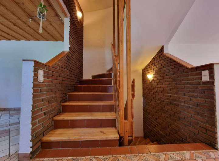 dekorative, massive Holztreppe vom Keller bis zum Dachgeschoss