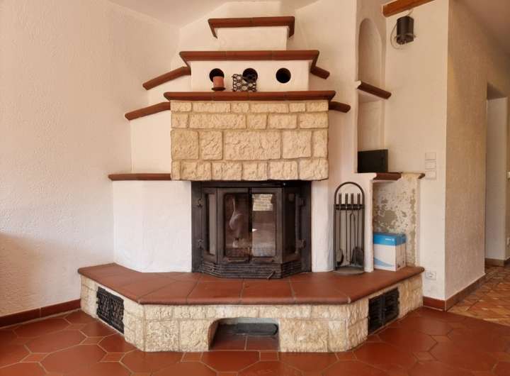 zwei kleinere Holzeinzelöfen im Keller und Dachgeschoss