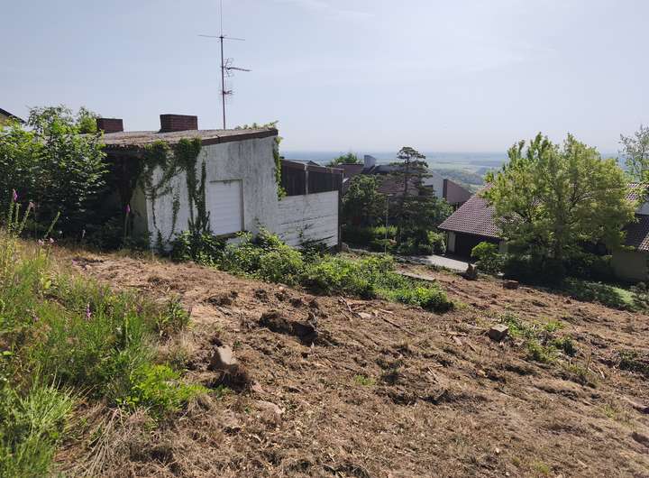 Grundstück bestehend aus 1.617 m² Vorderland und 955 m² Hinterland in Richtung Waldrand.