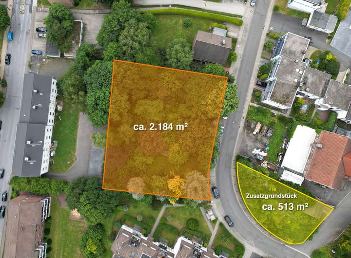 Ein Zusatzgrundstück mit ca. 513 qm kann bei Bedarf zusätzlich erworben werden. Hier können z.B. Stellplätze für die zu errichtenden Wohneinheiten entstehen.