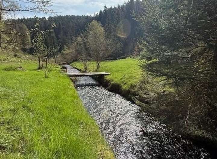 Das Grundstück liegt direkt am Helmbach, der sich malerisch durch die Landschaft schlängelt und zum Teil durch das Grundstück verläuft. Diese besondere Lage am Wasser verleiht dem Anwesen seinen einzigartigen Charakter und bietet Erholung pur – fernab von Verkehrslärm und Alltagsstress.