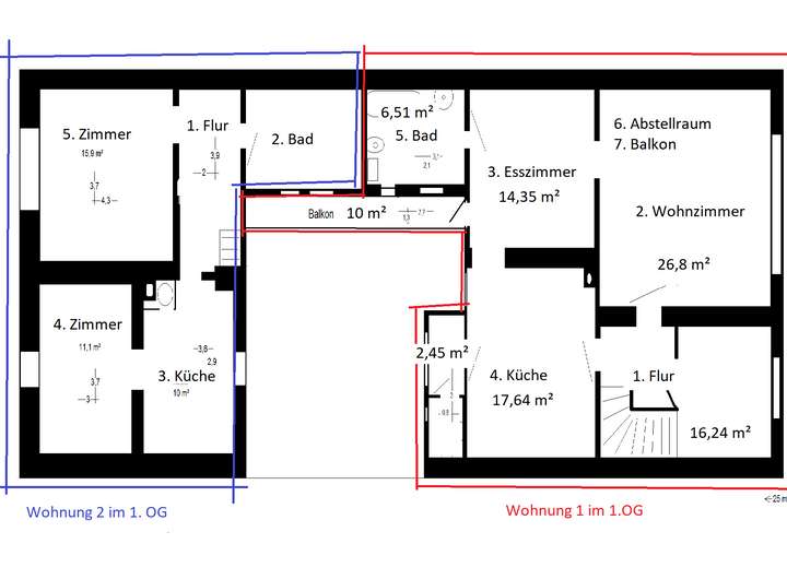 *2 große Wohnungen auf 2 Ebenen mit Balkon
