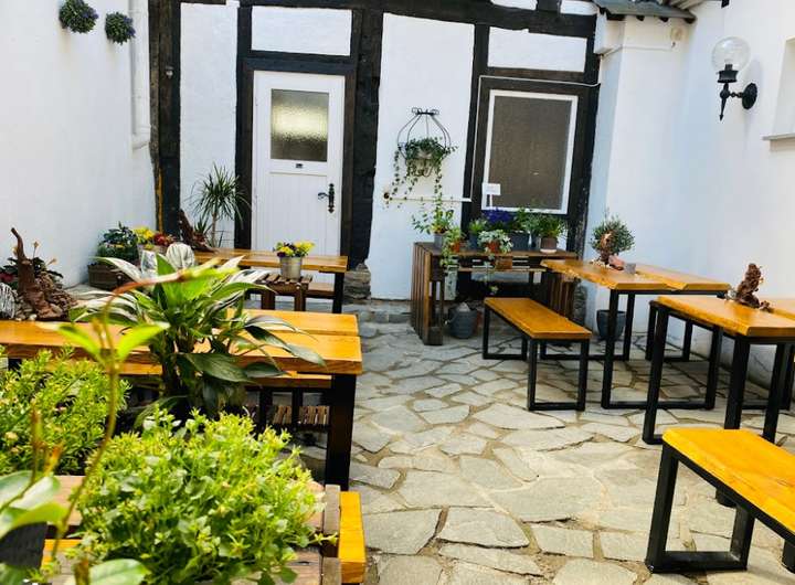 - stilvolle Terrasse im innenliegenden Hofbereich sowie weitere Sitzmöglichkeiten vor der Immobilie