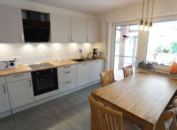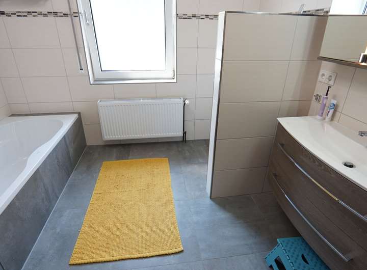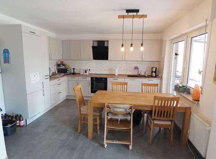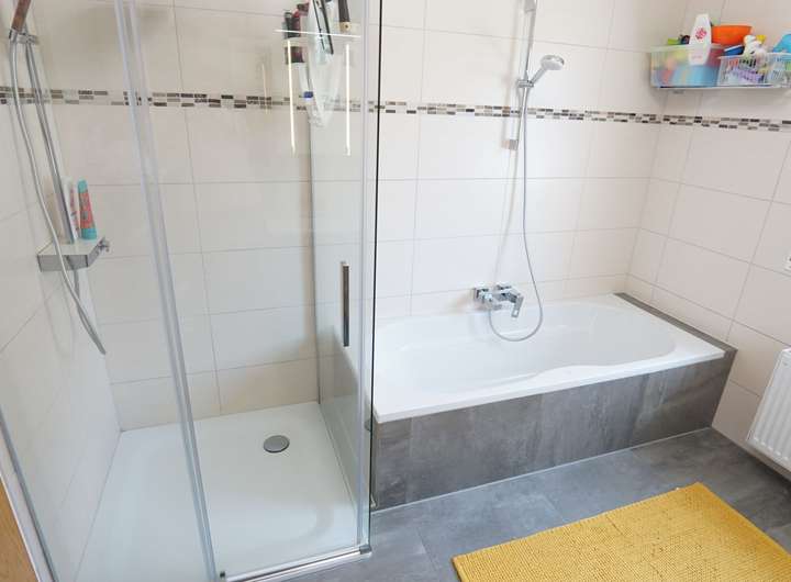Im Jahr 2024 erfolgte eine umfangreiche Renovierung: Im Erdgeschoss wurden die 2 Kinderzimmer, das Schlafzimmer sowie das Wohnzimmer mit einem hochwertigen, pflegeleichten Vinylboden ausgestattet. Zudem wurde eine neue, moderne Einbauküche installiert, die mit zeitgemäßem Design und funktionaler Ausstattung überzeugt. Auch die Oberflächenentwässerung wurde im Zuge der Arbeiten erneuert – ein wichtiger Beitrag zum langfristigen Werterhalt des Hauses. Die Kunststoff-Isolierfenster sind teilweise mit elektrischen Rollläden versehen. Die beiden Badezimmer wurden bereits 2019 modernisiert und präsentieren sich in einem geschmackvollen, modernen Stil. Die Beheizung erfolgt über eine effiziente Gas-Brennwerttherme aus dem Jahr 2016, die für ein angenehmes Raumklima sorgt.