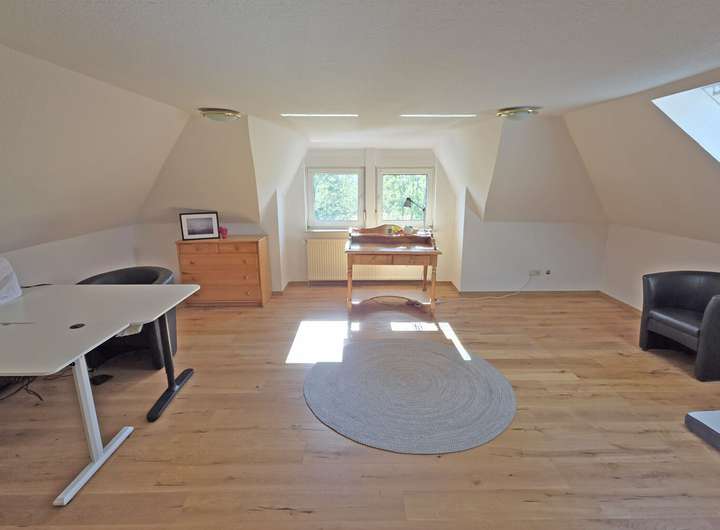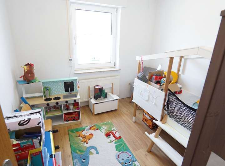 Die Aufteilung umfasst 2 Kinderzimmer und ein gemütliches Schlafzimmer, eine helle offene große Wohnküche, ein modernes Badezimmer mit Wanne und Dusche, ein separates WC sowie einen praktischen Technikraum. Besonders einladend ist die überdachte Terrasse, deren Glaselemente sich flexibel verschieben lassen – so genießen Sie entspannte Stunden im Freien, selbst bei Regen. Das Obergeschoss ist vollständig ausgebaut und bietet zusätzlichen Raum für vielfältige Nutzungsmöglichkeiten.
