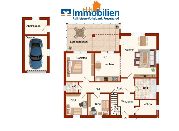 Raumaufteilung und bietet ideale Voraussetzungen für komfortables Wohnen auf einer Ebene.