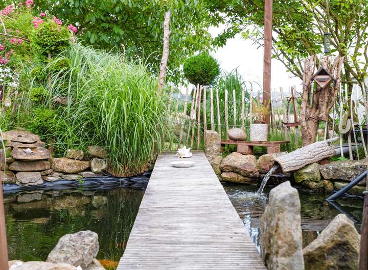 Der traumhaft angelegte Garten bietet einen wunderschönen Teich mit Fischbestand (Koi-Karpfen und Störe), einen gemauerten Regenwasserbrunnen und freien Blick über Felder und Wiesen. Diverse Verweilmöglichkeiten laden mit ihrer ruhigen Atmosphäre zum Entspannen ein! Welcher hiervon wird Ihr neuer Lieblingsplatz?