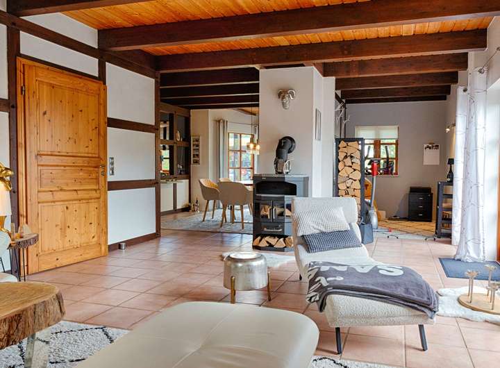 Ob Frühstück auf der Terrasse oder gesellige Abende am Gartenteich – hier genießen Sie Lebensqualität auf hohem Niveau. Der gemütlicher Kaminofen und die Sauna sorgen für zusätzliche Wohlfühlmomente.