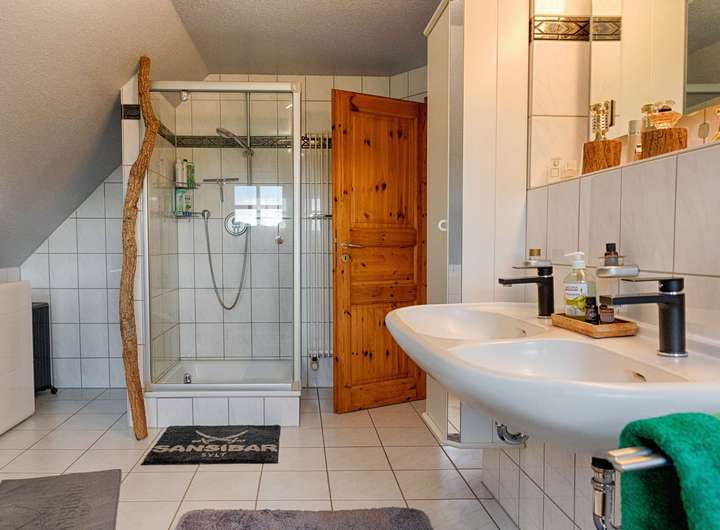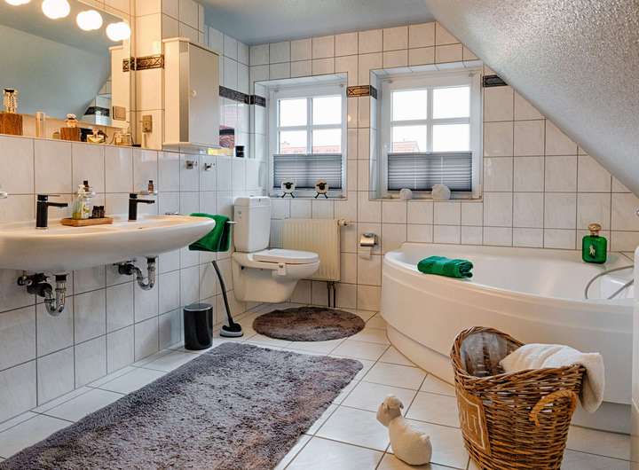 - Sanitärräume: Tageslichtbad mit Wanne und Dusche sowie Gäste-WC