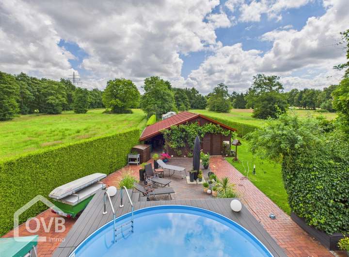 Das einmalige Angebot wird durch einen eigenen Pool im Garten, eine vielseitig nutzbare Blockhütte und ein Gewächshaus abgerundet. Das hintere Grundstück (Wiese) bietet sich auch zur Kleintierhaltung an. Fordern Sie gerne das vollständige Exposé an.