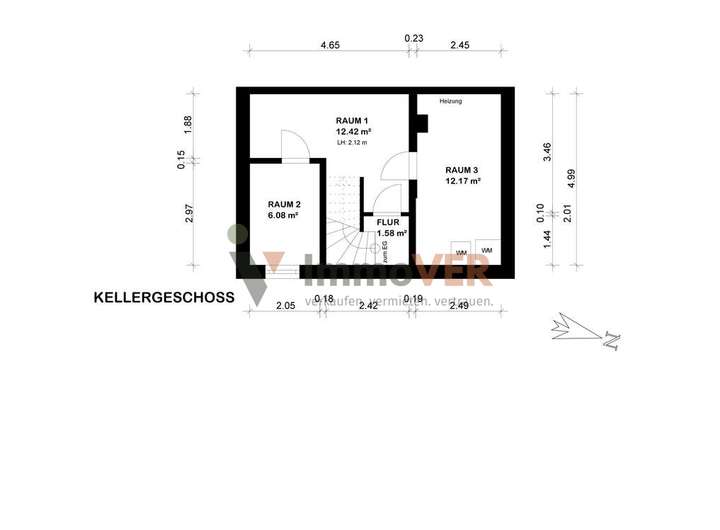 Das teilunterkellerte Haus bietet darüber hinaus drei weitere Räume sowie einen kleinen Flurbereich. Die Räume lassen sich vielfältig nutzen – ob als Hobbyraum, Werkstatt oder zusätzlicher Stauraum. In Raum 3 befinden sich zudem die Gasheizung, die ca. 1999 verbaut wurde sowie Anschlüsse für eine Waschmaschine und Trockner.