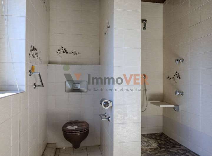 -	Tageslichtbadezimmer mit Dusche und Badewanne