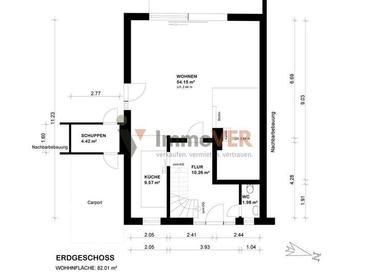 Abgerundet wird das Angebot durch eine praktische Auffahrt mit Carport-Stellplatz, die sich links neben dem Haus befindet. Von hier aus gelangt man direkt durch den Gartenschuppen in den Garten – ein durchdachtes Detail, das den Alltag erleichtert.