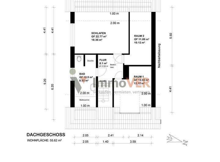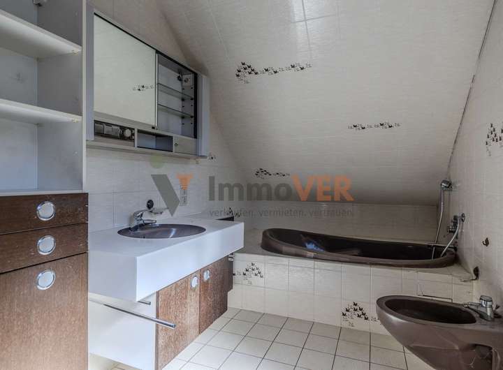 Im Dachgeschoss erwarten Sie zwei helle Zimmer, die sich flexibel als Schlaf-, Kinder- oder Arbeitszimmer nutzen lassen. Ein zusätzlicher Raum ohne Fenster eignet sich perfekt als Ankleidezimmer oder begehbarer Kleiderschrank. Das große Tageslichtbad mit Dusche und Badewanne bietet viel Raum zur Entspannung, wenngleich die sanitären Anlagen nicht mehr dem heutigen Standard entsprechen – hier bietet sich die Möglichkeit zur persönlichen Modernisierung.
